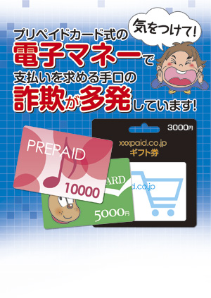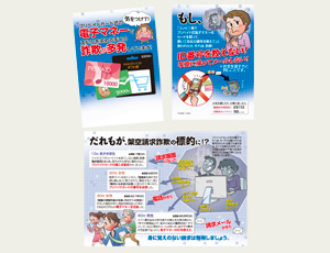 多発している「電子マネーを悪用した特殊詐欺」について注意を喚起する資料です。よくある手口と被害事例を知って、警戒を強めてもらえるようまとめました。コンビニや量販店等でも配布しやすいコンパクトサイズで、周知・啓発の機会が広がります。