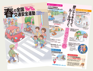 春の全国交通安全運動に則した内容をわかりやすく紙面に盛り込んでいます。全戸配布や回覧、街頭啓発など様々な用途に幅広くご活用ください。